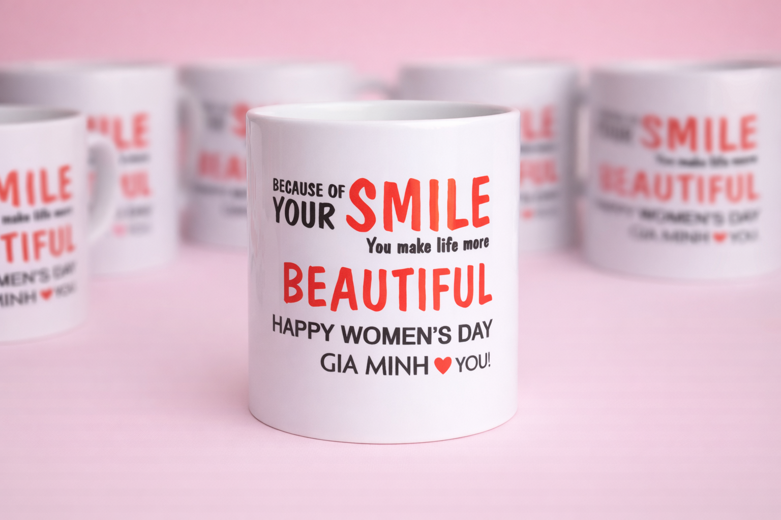 Ly sứ trắng quai tròn in hình theo yêu cầu