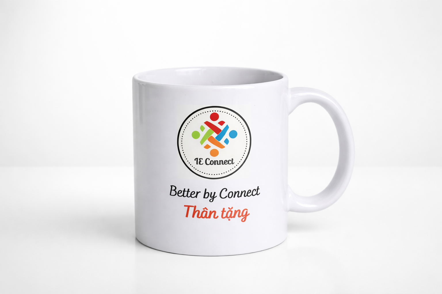 Ly sứ trắng quai tròn in logo IE Connect